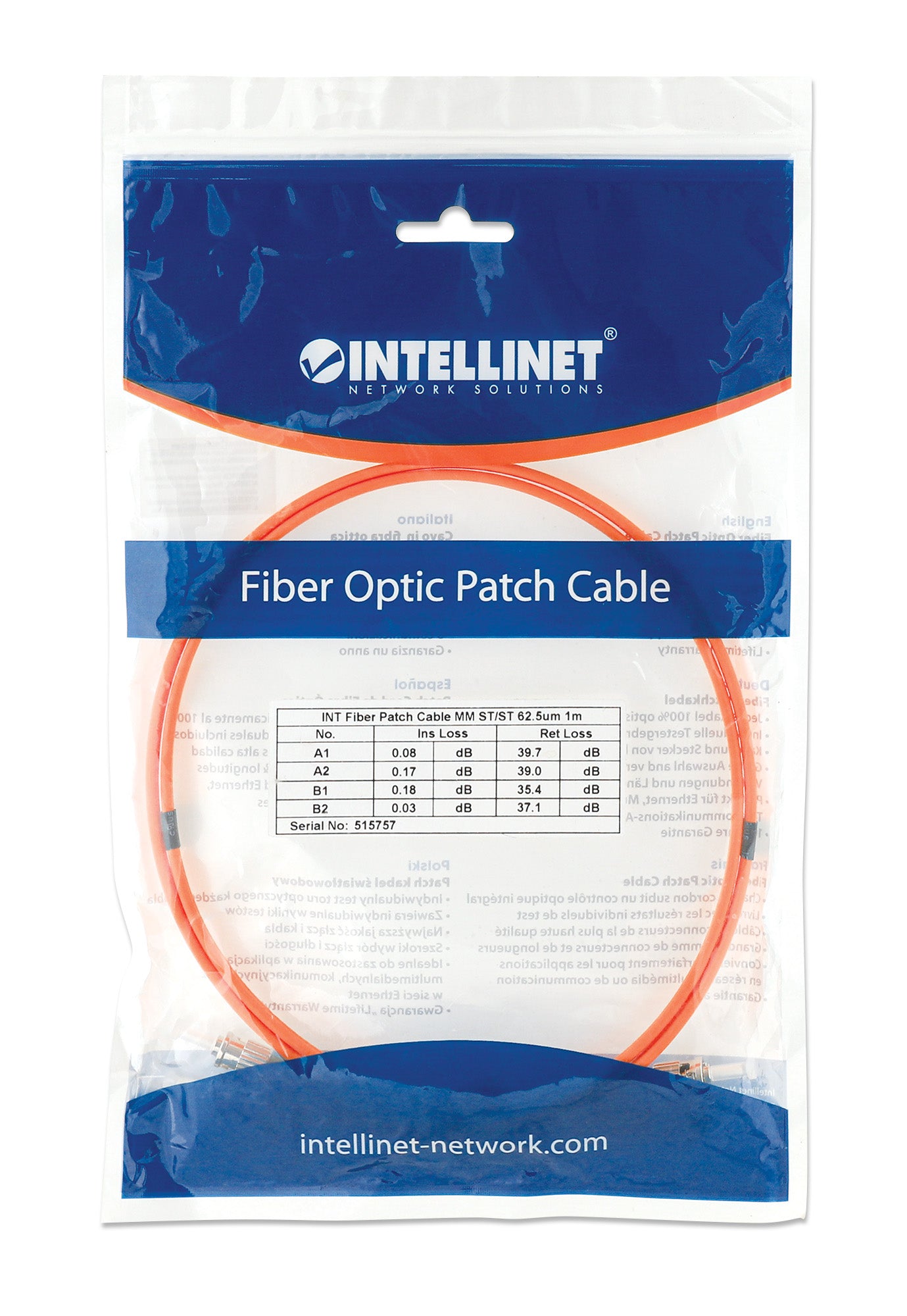 ST/ST, 62,5/125 µm, OM1, 1,0 m (3,0 ft.), Orange