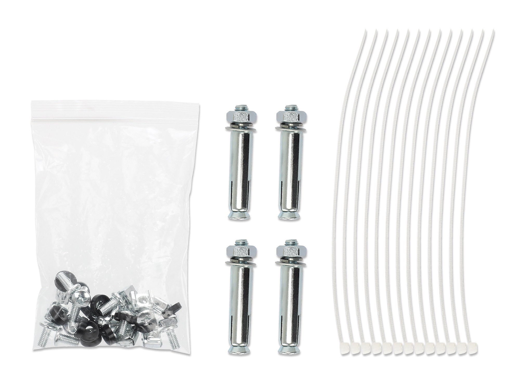 • Jeu d'écrous-cages pour équipement à montage en rack 19" (12 vis M6, 12 écrous-cages M6, 12 rondelles en plastique)